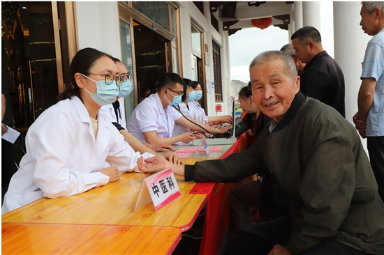 “我的血压可能有点高,帮我测一测。”“我早饭已经吃了,还能测血糖吗?”……5月20日早上8时左右,“白大褂”们刚到现场,就有村民围了上来。当天,政协新闻出版界特地邀请了新河镇卫生院的医护人员来为村民义诊。卫生院“开到”家门口,村民们自发地排起队伍。