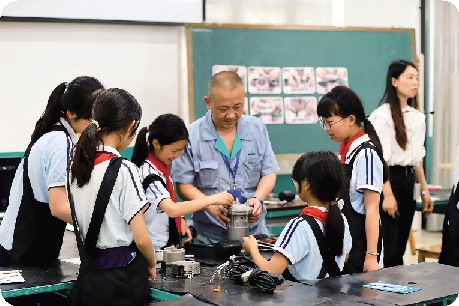 水泵是大溪的支柱产业。日前,大溪小学开展了工业类研学实践活动,学生们走进水泵厂,从样品间到生产车间,初步了解水泵的种类、作用和组成部分,目睹了水泵零件加工和组成过程。学生们还亲手制作水泵。一天的体验让学生们直呼“看似简单,做起来却挺难”。