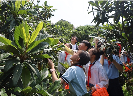 眼下,坞根镇的枇杷已进入最佳采摘期,该镇两新党组织开展主题党日活动,带领学生们进行枇杷采摘研学。该活动丰富了小朋友们的课余生活,也让他们亲近了大自然,收获喜悦、分享快乐。