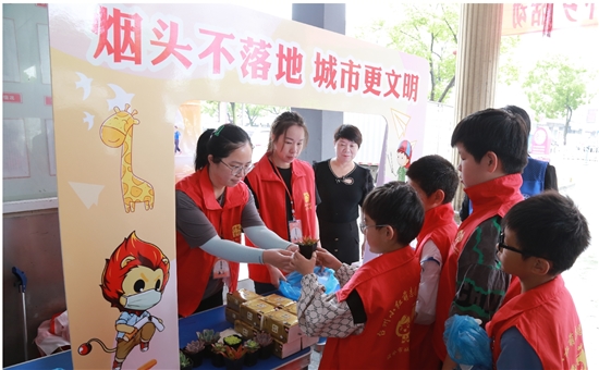 5月中旬,为落实“迎亚运 讲文明 树新风 当标杆”城市文明十大提升行动,市文明办、市文明城市创建办联合市教育局在城区范围内开展文明实践,通过“小手牵大手”、活动互动的形式,号召市民主动走进大街小巷,捡拾烟头垃圾、宣传控烟知识,自觉养成“烟头不落地”的良好文明习惯,以自身行动影响带动身边人,争做文明创建的践行者、引导者和监督者。