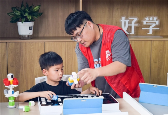 当天的首场活动以“爱,与你同行”为主题,根据居民的需求,针对不同年龄段的青少年开设了少儿编程、奥尔夫音乐、语言表演、甜品手作、工艺手作等精彩体验课程,吸引了辖区内百余名少年儿童报名参与。