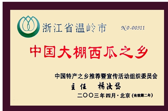 在接下来的十年里,围绕“8424”品种特性,温岭农业部门、乡镇以及瓜农勠力同心,开展了一系列试验研究,率先在全国研发出西瓜三膜覆盖全程避雨长季节栽培技术,解决了南方湿润多雨地区西瓜长季节栽培的难题。比如,设施从小拱棚发展到大棚,种植密度从每亩600~800株稀植为220~250株,改一次性施肥为1/4基肥加3/4追肥,等等。西瓜长季节栽培技术,使瓜农一年最多可采收10批优质瓜,这一创举不仅荣获省科学技术三等奖和省农业丰收二等奖,还推动温岭形成领先全国的技术优势。