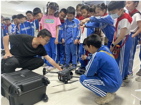 活动中,特警先带同学们进入装备室参观。一进入装备室,同学们就情不自禁地发出“哇”的声音,“这里的装备简直是样样齐全,有大大小小的无人机,好多我根本不认识。”学生刘钰喆说。特警给同学们介绍了身上穿戴着的装备,让同学们与警务装备来了个零距离接触,手枪、手铐、电棍,各种装备让孩子们激动不已。同学们还参观了特警的生活室、阅读室、训练室等。在小操场上,特警还为同学们展示他们的新型无人机——“穿空一号”,同学们一个个看得紧张又激动。此次活动,让同学们零距离地感受和了解了特警的生活,感受到了特警的坚韧和刻苦,更在他们心中播种下了一颗“警察梦”的种子。