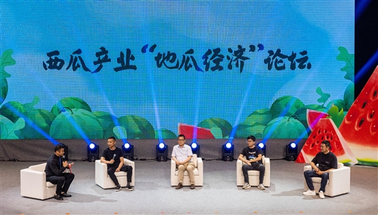 温岭西瓜产业“地瓜经济”论坛召开,主持人与四位“大咖”齐聚一堂,开展“微访谈”。