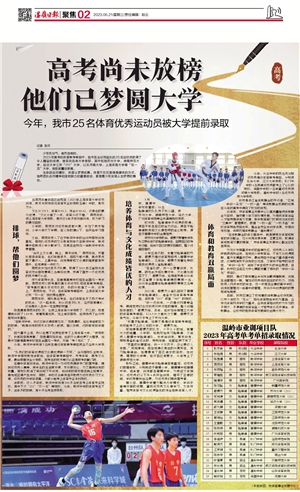 “我一边训练,一边通过网课等备考,期间老师们也对我进行针对性的辅导,整个过程挺辛苦的。”谢檬杰说。去年,他参加华南理工大学的体育单考单招,以0.5分之差失之交臂。谢檬杰没有气馁,今年终于考上了苏州大学。