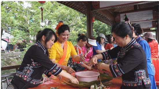 6月18日下午,在端午节来临之际,各民族同胞在城南镇田园牧歌石榴红家园开展了“多彩活动迎亚运,民族团结庆端午”活动,来自壮族、傣族、彝族、土家族等30余位少数民族同胞,分组进行了包粽子、粽子接力赛、“一举高粽”等比赛,以此迎接亚运到来,庆祝端午佳节,促进民族融合交流。