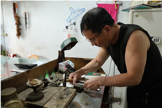 上世纪八九十年代,打金是个热门行业,几乎每条街都有几家打金铺。而如今,曾经随处可见的打金铺慢慢淡出了人们的视野,在太平街道已鲜能见到,杨方君是为数不多能够坚守下来的打金匠人之一。