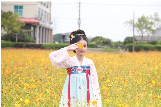 本次开放的花以硫华菊为主,占地面积近5万平方米,于3月初播种,历经三个月的精心养护,目前已进入盛花期。这片花海就在六闸潮村文化礼堂旁边,沿着乡间小路前行,入目皆是鲜艳的花朵。六闸潮村村干部告诉记者,为了配合美丽乡村建设,村里打造了这片田园花海,吸引了很多游客到村里来游玩打卡。