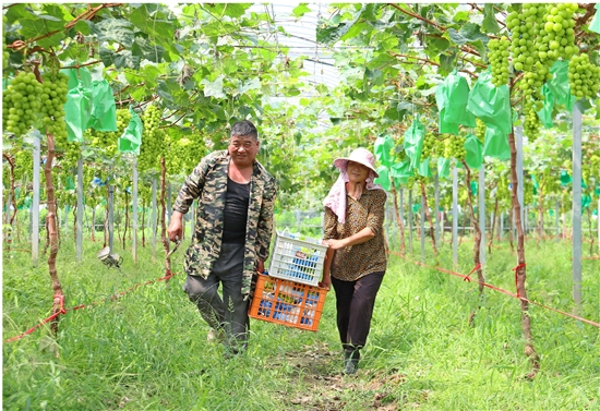 得益于“大树冠栽培技术”,这里的“阳光玫瑰”通过“T”字、“H”字树型和箱筐式、条垄式等半限根稀植模式,不仅实现了降本增效、错峰上市,优质果率也明显提升,甜度、品相上佳。接下来,公司计划引进包装流水线,进一步提升产业“吸金”能力。