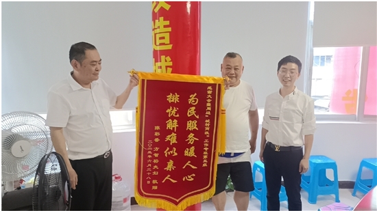 方智裕一家送来的锦旗。(图片由太平街道提供)
