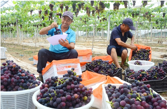 近日,在滨海镇东风塘老五农庄的葡萄园里,果农正在一边采收葡萄,一边分拣装箱,准备销往各地果蔬市场。连日来,各地订单纷至沓来,葡农喜笑颜开。目前,滨海镇有7800多户、近2万人从事大棚葡萄产业,该镇农民仅葡萄种植一项,经济收入就可达5亿多元,小小葡萄“串”起了村民的甜蜜生活。