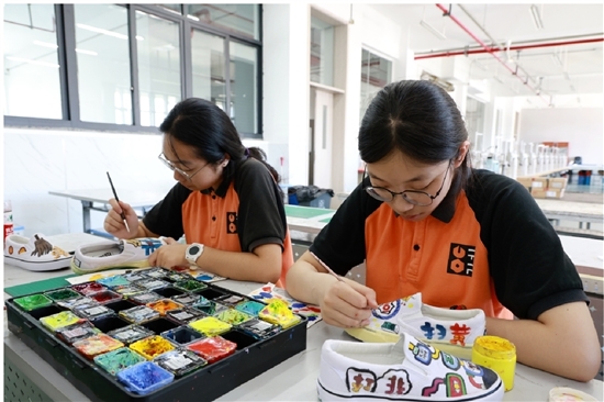 工作台上,来自鞋制品设计与制作专业的学生们潜心构思,他们在日常生活中获取灵感,在传统文化中汲取创意,并结合自身鞋样设计专业知识进行绘制。他们先用铅笔在空白鞋帮面上细细勾勒出线条,再用丙烯颜料一点点上色,用心地将“扫黄打非”画进鞋里,不一会儿,一幅幅主题手绘跃然而出。“打击侵权盗版,向有害出版物说NO!”“文明网络,拒绝盗版!”一双双“扫黄打非”主题的童鞋在学生们的巧手下新鲜出炉。学生们纷纷表示,通过主题鞋样设计,加深了对“扫黄打非”的了解,今后将自觉参与到“扫黄打非”中来,远离有害出版物,拒绝购买盗版书籍,争做文明卫士。