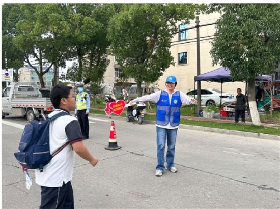 6月30日,台州市级文明单位滨海镇卫生院开展全市新时代文明实践之“礼迎亚运 志愿同行”集中志愿日行动,组织志愿者与滨海镇交警大队在滨海镇锦湾路与横河路交叉路口开展交通安全劝导行动,对行人过斑马线浏览手机、闯红灯等行为进行劝导,营造平安护航亚运氛围。 通讯员 王晨摄