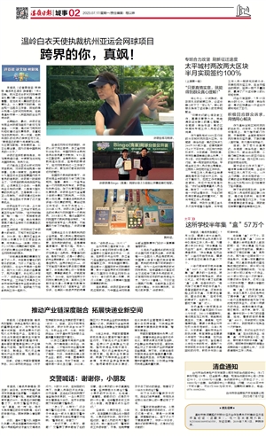 本报讯(记者蒋佳延 林特栋 通讯员王凌云 陈爱君)7月8日晚,杭州亚运会软式网球等项目比赛门票一经开启预售,迅速售罄。在如此受人瞩目的亚运会赛场上,令人意想不到的是,将出现一名医务工作者,而她的身份则是一名软式网球裁判。她就是温岭市第一人民医院的主任药师许筱。