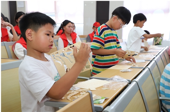 当天下午,温岭市青少年宫还提供了100份的小恐龙拼图,学生们在听完李博士精彩的讲座后,对恐龙更感兴趣了,他们领到了小恐龙拼图,马上投入了手工拼图中,个个拼得相当认真。