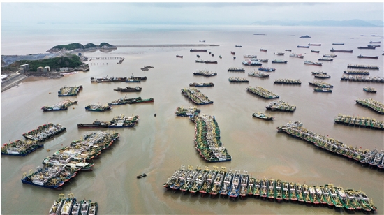 7月31日,受第6号台风“卡努”影响,我市沿海地区渔船纷纷停靠各地渔港,加固缆绳,做好防台风准备工作。