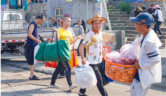 渔民们正在搬运生活物资。通讯员 莫超任摄