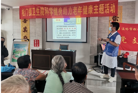 此外,太平街道、城北街道、泽国镇、箬横镇、石塘镇、温峤镇、城南镇、石桥头镇等联合辖区内的卫生院,到文化礼堂开展老年人健康知识讲座与义诊等活动,积极宣传普及老年健康政策和科学知识,引导老年人形成健康的生活方式。