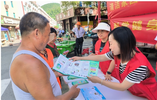 7月28日,温岭市第四人民医院医护人员在门诊大厅发放老年人健康宣教知识折页。该院健康教育和健康促进科张永斌主任,还细心地为老年人提出的健康问题答疑解惑。