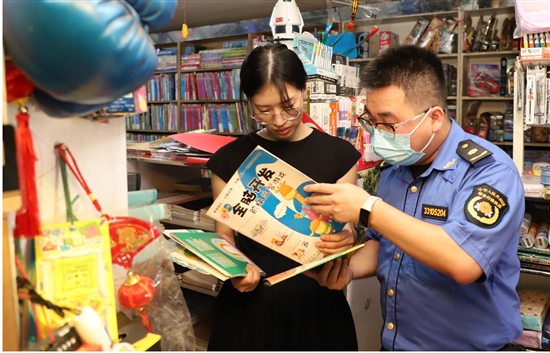 本报讯(通讯员江文辉文/图)近日,松门镇组织扫黄打非办公室、市综合行政执法局松门中队开展出版物市场联合执法检查,净化校园周边环境,为莘莘学子营造绿色“开学季”。