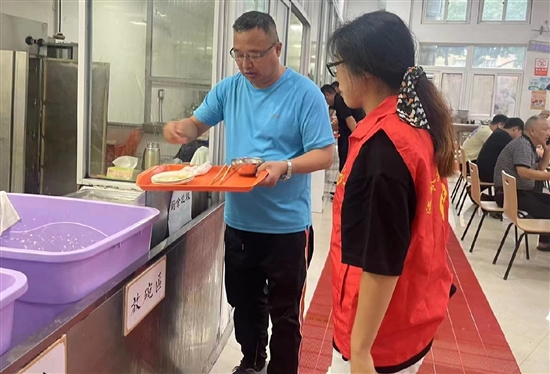 8月25日,市交通运输局组织志愿者开展“垃圾分类我先行 绿色低碳迎亚运”志愿服务活动。在食堂内部,志愿者现场指导工作人员区分易腐垃圾、其他垃圾和可回收物,并将垃圾正确投放到相应的垃圾桶中。