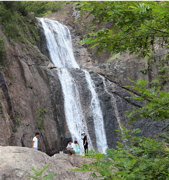 近日,游人在城南镇白溪瀑布景区游玩。白溪瀑布倾泻而下,气势如虹,清流逶迤,奔腾不息。溪边,游人三三两两,享受大自然的美好和清凉,欢声笑语在山谷里久久回荡。