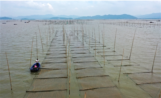 随着白露节气的到来,坞根镇养殖户紧抓有利天气,把紫菜苗放养到浅海上,耕耘“海上菜园”。今年,当地紫菜养殖面积达5000多亩,经过45天的养殖,第一茬紫菜就可以采收了。