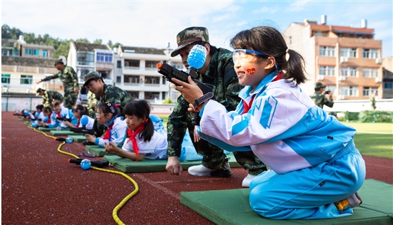 新队员入队仪式结束后,学校还组织全体队员来到操场开展军事游戏。游戏分过独木桥、穿越封锁线和清除敌军三个环节,只见各个少先队员过独木桥时努力保持平稳安全,低头弯曲身体,快速前行,顺利通过敌人的“火线”,第一时间完成对敌人的“击倒”任务。“我们希望通过一系列红色课程,让更多少先队员成长起来,也希望能培养出更多新时代的好队员。”潘雪萍说。