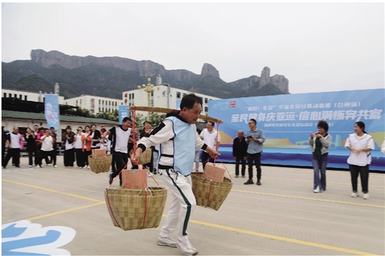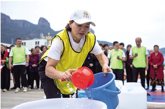 刚刚闭幕的杭州亚运会,展现了顽强拼搏、奋勇争先的体育精神。村运会上,来自方山村文化礼堂、马鞍村文化礼堂、上新建村文化礼堂、双塘村文化礼堂、中溪村文化礼堂和白塔村文化礼堂的运动团队,在“勇挑重担”“摸石过河”“抢播接力”“争运奶茶”“提水抗旱”“水到渠成”6个运动项目中,你追我赶、通力合作,也展现了敢为人先的温岭精神。