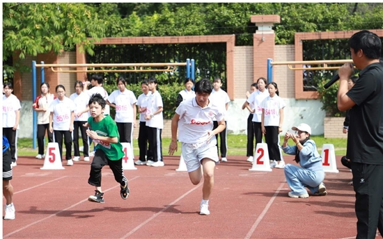在升国旗仪式和校长致辞后,裁判员代表和运动员代表分别进行了宣誓,为期两天的学校运动会正式开始。首先进行的是由教师代表队和家长代表队举行的篮球运球传球接力赛。随后,100米、跳高、跳远等多个比赛项目精彩上演。运动员们摩拳擦掌、跃跃欲试,现场助威声、呐喊声此起彼伏。