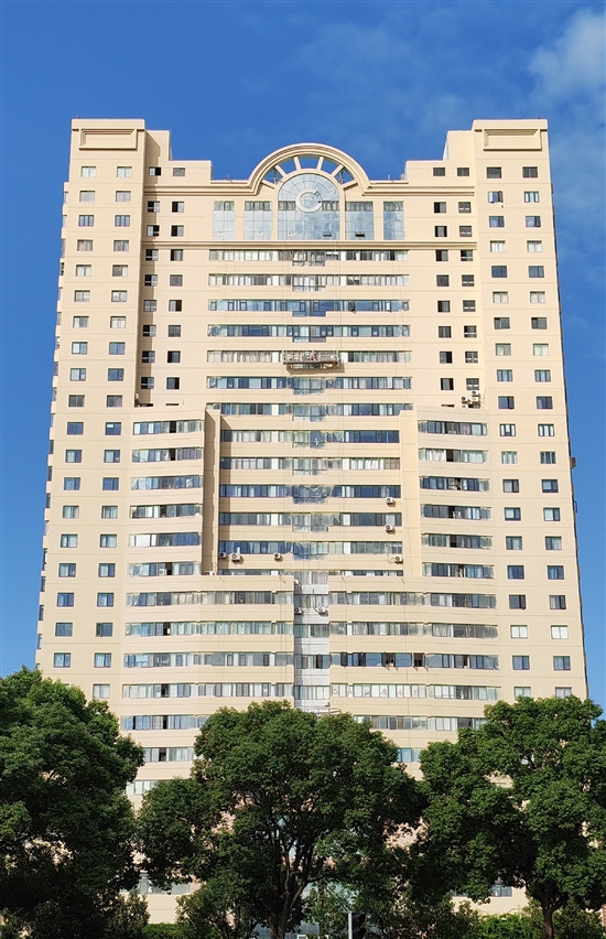 近日,作为曾经的地标建筑,与城同名的温岭大厦换上“新装”,装修工人正在为大厦涂刷外墙。