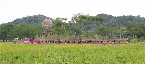 近日,在以农耕文化为主题的城南镇田园牧歌研学基地内,孩子们深入稻田,近距离观察稻穗,感受秋收之美。