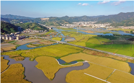 10月29日,坞根镇大塘湿地稻谷金黄,一派丰收景象。近年来,革命老区坞根镇积极践行“绿水青山就是金山银山”的发展理念,加大湿地生态环境保护力度,既稳定了粮食生产面积,又促进了农旅融合,推动农村振兴,实现农民增收。