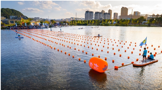 10月29日下午,一场热闹非凡的“岭水十年 全民护水”公开水域游泳邀请赛在九龙汇公园举行。此次邀请赛由市环境综合整治事务中心、市体育事业发展中心主办,市游泳协会承办,来自台州市9个县(市、区)的400余位选手齐聚一堂,分别参与了公开水域10×200米游泳团体接力赛、九龙湖畅游以及桨板竞速赛。以水为媒、以泳会友,他们在酣畅淋漓的比赛氛围中体会水清岸绿、碧波浩渺的惬意。