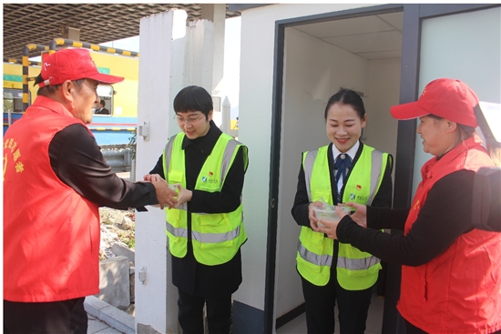 本报讯(记者张璐祎 通讯员金云国文/图)11月15日,温岭市城之南党员志愿队组织志愿者来到温岭南收费站,为奋战在城市一线的高速路工作人员送上一份温暖。