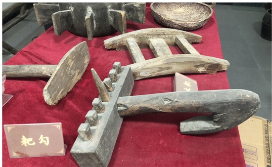 上山村文化礼堂老农具。