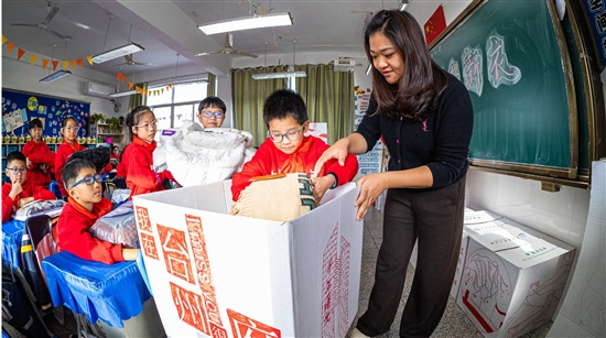 近日,大溪镇第二小学举行“新年新衣”崇善公益活动。学校师生们将捐赠的衣物包装成箱再寄往甘肃,为那里的同学送去冬日的温暖和新年的祝福。自2014年起,该校就提倡学生给山区的孩子们捐赠新衣服、帽子、手套、书包等,让偏远山区的孩子们也能过上一个温暖的新年。 记者 徐伟杰 通讯员 杨鹏摄