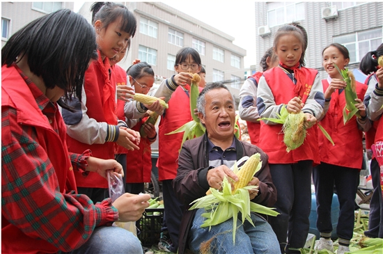 江云青与小志愿者交流。