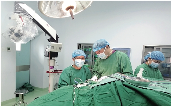 王军友(左一)在阆中市人民医院手术室工作。(照片由受访者提供)