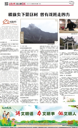 2023年12月19日、20日两天,因“百村行”采访,记者两次走进楼旗尖南麓的景区村庄温峤镇北珠村。19日下午去该村时,恰下小雨,记者先到村文化礼堂,看了有关介绍后得知,方、杨、叶、陈是该村的四大姓,此外还有徐、蔡、潘、季等姓氏。