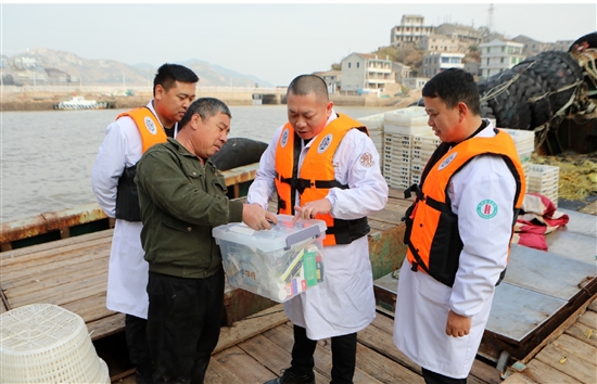 1月3日,石塘镇卫生院医务人员为即将出海的渔民送上“小药房”。
