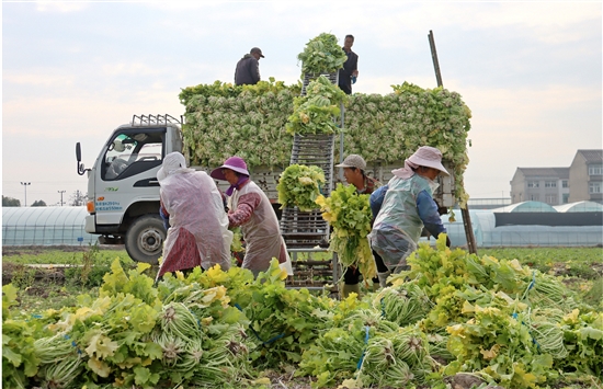 近日,在箬横镇田间地头,菜农们正组织工人趁着晴好天气收割、装运蔬菜,力争在大寒霜冻、冰冻前期完成相关作业。箬横镇是农业重镇,今年冬令蔬菜的种植面积超过4万亩,其中小寒节气前后采收了近万亩,目前已完成50%以上的收割量。