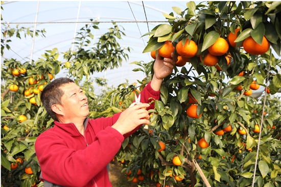 近日,在位于新河镇下章村的浙庄水果基地里,果农万邦斌正在采摘“红美人”。2013年,浙庄水果基地成为温岭乃至台州最早栽培“红美人”的农场;十多年后的今天,该基地的橘子品质越来越好,因此售价高但仍畅销,基地也始终发挥着示范作用,引领更多农民走向共同富裕道路。