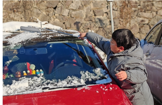 林渝乔是城东小学四年级的学生,当天学校放假,他想做点有意义的事。“我起了个大早,本来想来玩雪,后来看到每辆车上都有厚厚的雪,就想着用刮板清理干净,还能帮助大家,何乐而不为?”林渝乔告诉记者。 记者 郑灵芝 摄