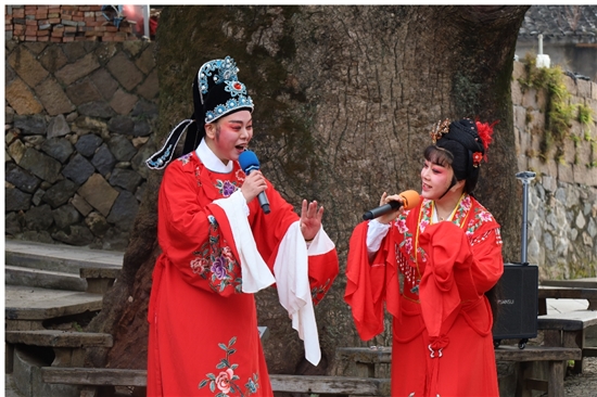活动现场,欢乐喜庆的古典舞《长街万象》、经典越剧选段《孔雀东南飞——洞房》、传统武术表演《响扇》以及优美动听的古筝演奏等精彩节目轮番上演,当地村民聚在一起,共同体验传统节日的习俗与乐趣,提前营造喜气洋洋的节日氛围。