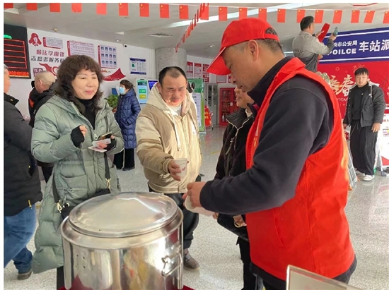 2月5日,市交通运输局开展“龘龘见文明 志愿迎新春”集中志愿日行动。志愿者们赴客运中心设立爱心服务点,为来往乘客提供暖心姜茶、交通咨询等志愿服务。