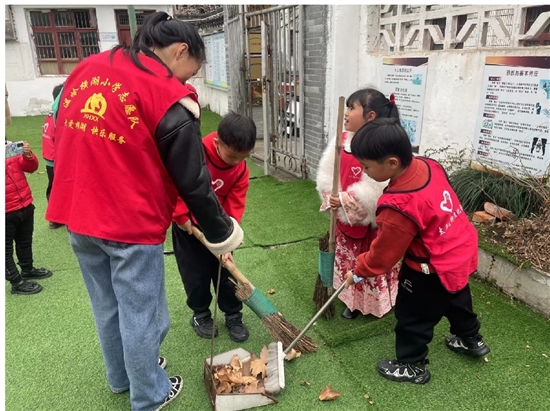2月2日,横湖小学志愿服务队开展新时代文明实践之“龘龘见文明 志愿迎新春”集中志愿日行动。志愿者们带领孩子们来到太平街道老街文化礼堂开展志愿服务活动,大家拿起扫把和簸箕,打扫落叶,擦拭橱窗,干得热火朝天。 通讯员 赵莎莎 摄