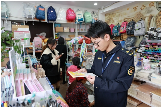 在浦江路两家书店,检查组重点检查有无经营侵权盗版教辅书籍以及淫秽色情、封建迷信等危害青少年身心健康的非法出版物,并对其营业证照、进货渠道等进行查看,检查是否齐全、正规。在振兴西路一家文具店,检查组检查了该店是否存在超范围经营,有无在售危害青少年健康的学习用品、玩具等情况。行动中,检查组发现个别商家在售卖少量“老黄历”,当场予以收缴。