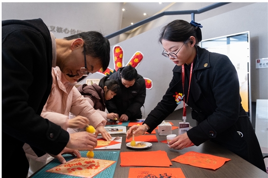 日前,市博物馆的年画拓印区,在工作人员的指导下,家长们带着孩子匀墨、刷墨、铺纸、印制……一幅幅生动活泼的年画跃然纸上。活动将艺术与传统文化相融合,让市民在体验版画魅力的同时,也为新的一年增色添彩。 记者 徐伟杰 摄