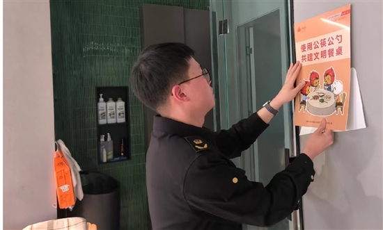 3月5日,城西市场监管所开展“满城蓝马甲 全民学雷锋”文明实践主题行动,组织志愿者前往恒隆商业街周边餐饮店,开展制止餐饮浪费及“公筷公勺”宣传,张贴宣传海报及桌贴,营造文明就餐氛围。